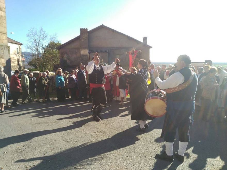 Toques procesionales, pasacalles e interpretación de las canciones de la misa castellana en la liturgia acompañada de los toques religiosos con gaita y bamboril.